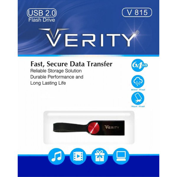 فلش وریتی VERITY V815 64GB با بدنه فلزی خود در برابر بسیاری از ضربه ها مقاوم است، به همین دلیل می تواند یک همراه خود در فضاهای باز و آزاد برای شما باشد. همچنین این فلش مموری دارای یک سری USB 2.0 است که اطلاعات را باسرعت مناسبی انتقال می دهد. این سری ها، رابط های معمول در بسیاری از فلش مموری ها با ظزفیت های گوناگون هستند که به شما سرعتی مطلوب را ارئه می دهد. فلش وریتی VERITY V815 64GB همچنین دارای یک بند متصل به انتهای بدنه خود است که می توانید با استفاده از این بند، از گم شدن آن جلوگیری کنید. لازم به ذکر است که این فلش مموری دارای ابعاد کوچک و بسیار قابل حملی است که علاوه بر اشغال جای بسیار کم در زمانی که درون پورت هم هست به دلیل اینکه بیشتر بدنه آن وارد پورت شده، احتمال خم شدن و یا شکستن آن به حداقل می رسد.