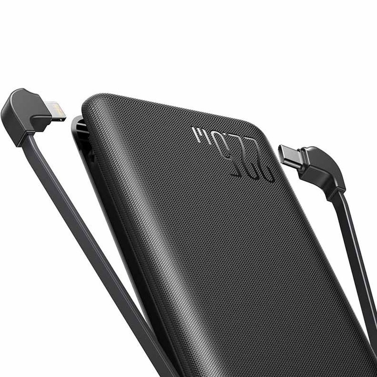 این دستگاه با پورتهای ورودی تایپ C و میکرو USB و خروجیهای متنوع شامل کابل لایتنینگ، پورت تایپ C، کابل تایپ C و پورت USB، امکان شارژ گستردهای برای دستگاههای مختلف فراهم میکند.