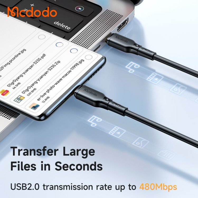 کابل Mcdodo CA-3310 برای انتقال دیتا نیز مناسب است.همچنین سرعت انتقال دیتا 480mbps است که می توانید در کمترین زمان ممکن اطلاعات را به سیستم نیز انتقال دهد.