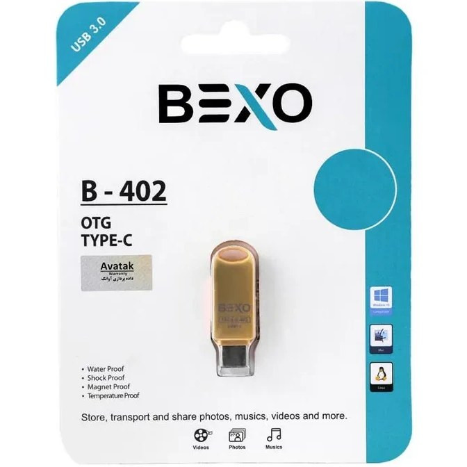 BEXO B-402 USB3.0 Type-c Otg Flash Memory-64GB (گارانتی داده پردازی آواتک) طلایی