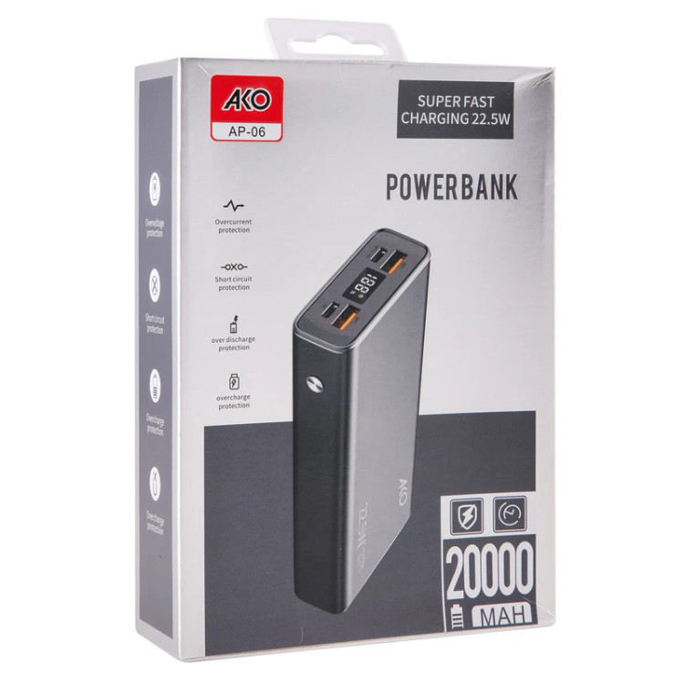 پاوربانک 22.5 وات آکو مدل AP-06 ظرفیت 20000 میلی آمپر ساعت