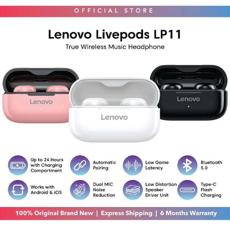 امروزه هندزفری ها نیاز های ضروری هر شخص میباشد بیشتر افراد در طول روز به مکالمه میپردازند و برای آرامش خود به موسیقی گوش میدهند که استفاده از هندزفری از نوع سیمی مشکلاتی را ایجاد میکنند مثل گره خوردن و فرسودگی کابل. نسل جدید هندزفری های بی سیم این مشکل را حل کرده است. هندزفری LP11 محصول شرکت لنوو (Lenovo) میباشد.هندزفری Lenovo LivePods LP11 دارای یک داک شارژ و دو ایرباد میباشد که با قرار دادن هر کدام از ایربادها داخل داک شارژ علاوه بر نگهداری و حفاظت میتوانید آنها را شارژ کنید سر ایربادز از نوع داخل گوش طراحی شده و به درستی در گوش قرار میگیرد به دلیل وزن کم آن بدون هیچ مزاحمتی میتوانید به مدت طولانی استفاده کنید. هندزفری لنوو LP11 که ظرفیت باتری داک شارژ 300 میلی آمپر و هر کدام از ایرباد ها 40 میلی آمپر میباشد با شارژ کامل ایربادها میتوانید به مدت 3 ساعت از آنها در حالت موزیک استفاده کنید و در حالت مکالمه بصورت میانگین 48 ساعت قابل استفاده میباشد. شما همچنان میتوانید جندین بار این ایربادها را با داک همراه شارژ کنید این تست انجام شده با حجم صدای ۵۰ درصد میباشد که در شرایط مختلف میتواند متفاوت باشد.بر روی گوشی های هندزفری کلید لمسی وجود دارد که کاربردهای زیادی را برای کاربر فراهم میکند. که میتوانید به مدیریت تماس ها و موسیقی بپردازید. هندزفری Lenovo LP11 از بلوتوث نسخه ۵.۰ پشتیبانی میکند که باعث می شود اتصال پایدار تر و سریع تر داشته باشد و همچنین مصرف باتری را کاهش دهد.