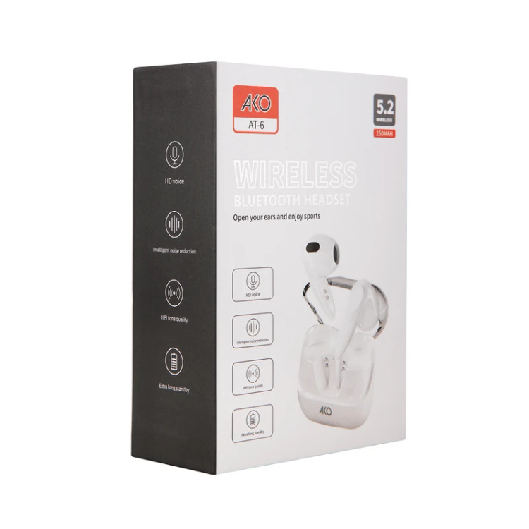 هدفون بیسیم AT-6 شرکت آکو از طراحی داخل گوش و جذابی بهره میبرد.ماژول بلوتوث 5.2 اتصال سریع و پایداری را میسر میکند. طراحی ارگونومیک این محصول باعث شده که هنگام استفادهی بلندمدت از آن هیچگونه احساس خستگی یا درد در ناحیهی گوش خود نکنید.