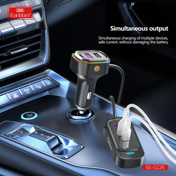 در عصر ارتباطات، یک سفر جادهای بدون دسترسی به وسیلهای برای شارژ کردن انواع وسایل الکترونیکی، سفری دوستنداشتنی و پردردسر خواهد بود. به همین دلیل، برندهای زیادی به تولید انواع شارژرهای همراه پرداختهاند که شارژر فندکی ارلدام CC26 یکی از بهترین نمونههای این نوع دستگاههاست. این وسیله با داشتن 6 درگاه خروجی شارژ سریع و طراحی ویژهای برای دسترسی آسان سرنشینان جلو و عقب، شارژ داشتن گوشیهای همراه، تبلتها و دیگر گجتهای دیجیتالی شما و خانوادهتان در تمام طول سفر را تضمین میکند. بدنهی این شارژر از PC ضدضربه و ABS نسوز ساخته شدهاست تا از مقاومت خوبی دربرابر آسیبهای روزانه برخوردار باشد. طول کابل متصل آن 1.5 متر. برروی قسمتی از این شارژر که به جافندکی ماشین متصل میشود، 3 درگاه برای استفادهی راننده و مسافر صندلی جلو قرار داده شدهاست. قسمت دیگر که به انتهای کابل وصل است دارای گیرهایست که اجازه میدهد تا شارژرِ دارای 3 پورت خروجی را در جیب پشت صندلی محکم کنید. از آنجایی که ولتاژ ورودی EARLDOM CC26 بین 12 تا 24 ولت است، این دستگاه با انواع وسایل نقلیهی سبک و سنگین سازگاری دارد و میتواند برق آنها را به ولتاژ استاندارد USB تبدیل کند.به این ترتیب، با بهکارگیری این شارژر فندکی میتوانید 6 وسیله را بهطور همزمان شارژ کنید، درحالیکه فرقی نمیکند هرکدام آنها از چه برندی هستند و ظرفیت باتریشان چقدر است. شارژر فندکی رلدام CC26 3 درگاه برای کابین جلوی خودرو دارد. 2 تا از این درگاهها از نوع USB هستند و دیگری Type-C. ولتاژ و شدتجریان خروجی از این 3 پورت، 5 ولت و 3.1 آمپر است که خود برای شارژ سریع انواع گوشیهای هوشمند کافی خواهد بود. بهعلاوه درگاههای قسمت دیگر این دستگاه نیز از نوع USB و Type-C هستند و قادر به تأمین 5 ولت ولتاژ و 3.1 آمپر شدتجریان برای شارژدهی به لوازم شما. تمام این 6 پورت به فناوریهای شارژ سریع Power Delivery و یا QC 3.0 مجهزند تا بتوانند وسایل الکترونیکی را در کمترین زمان و در بهینهترین حالت ممکن شارژ کنند. هرکدام از درگاهها به تراشهای برای شناسایی نوع وسیلهی متصلشده و تخصیص جریان مناسب برای شارژ آن مجهزند. همچنین از لوازم شما دربرابر موارد آسیبزایی همچون دما، شدتجریان ولتاژ و شارژ بیش از حد، اتصالات کوتاه و ... محافظت کند.