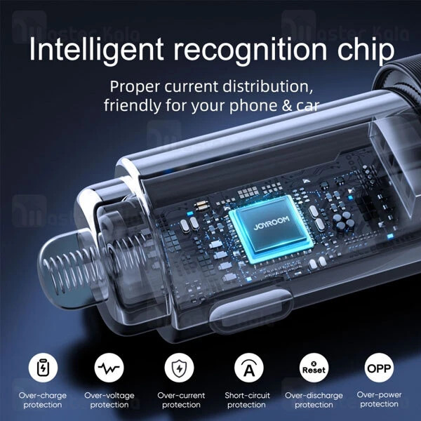 شارژر فندکی جویروم JoyRoom JR-CL10 4.8A Dual port Car Charger توان 24 وات خالی کردن شارژ گوشی یکی از معضلات مسافرتهای جادهای است که معمولا با شارژر فندکی ماشین حل میشود. به همین دلیل خرید شارژری که دارای پورت های مناسب باشد کاملا لازم و ضروریست. شارژر فندکی ماشین جویروم JoyRoom JR-CL10 دارای دو پورت یو اس بی (USB) است. توان خروجی کلی این شارژر 24 وات بوده و دارای شدت جریان 4.8 آمپری می باشد؛ که در صورت استفاده از دو پورت این مقدار بین پورت ها تقسیم خواهد شد. طراحی جنس بدنه ی شارژر فندکی جویروم JoyRoom JR-CL10 از پلاستیک نسوز و آلیاژ آلومینیوم ساخته شده که دارای مقاومت خوبی است؛ ابعاد این شارژر فندکی 25.6x25.6x63.8 میلی متر و وزن آن حدود 23 گرم می باشد. روی بدنه شارژ فندکی جویروم دو پورت USB تعبیه شده که می توانید به صورت تکی و یا همزمان از این دو پورت استفاده کنید. این شارژر دارای چراغ LED می باشد که باعث زیبایی آن شده، بعلاوه نور این چراغ ها می توانید در تاریکی شب به شما کمک کند تا راحت پورت شارژر را پیدا کنید. مشخصات و قابلیت ها ورودی فندکی جویروم به درگاه فندک ماشین وصل شده و تقریبا با تمام ماشینهای 12-24V سازگاری خواهد داشت.شما می توانید از هر دو پورت به صورت همزمان و یا یکی از پورت ها استفاده کنید. ولتاژ و جریان هر کدام از پورت ها به صورت 5V / 2.4A می باشد. شما می توانید با استفاده از یک پورت و یا هر دو پورت گوشی خود را سریع شارژ کنید. یکی از قابلیت های شارژر فندکی جویروم چیپ هوشمند نصب شده در این شارژر است که باعث اندازه گیری میزان جریان و ولتاژ ورودی به دستگاه شما می باشد؛ به این معنی که از ورود اضافه بار، اضافه ولتاژ، گرما، اتصال کوتاه و افت ولتاژ به دستگاه شما جلوگیری می کند. این قابلیت علاوه بر افزایش عمر باتری باعث شده به دستگاه شما آسیبی وارد نشده و شما با خیالی آسوده به شارژ گوشی و دستگاه خود بپردازید.