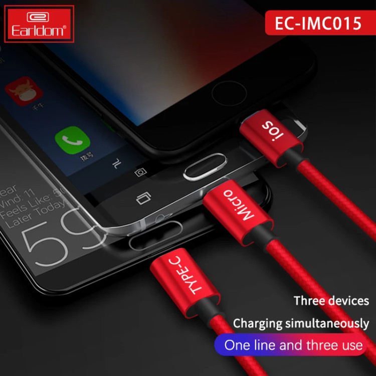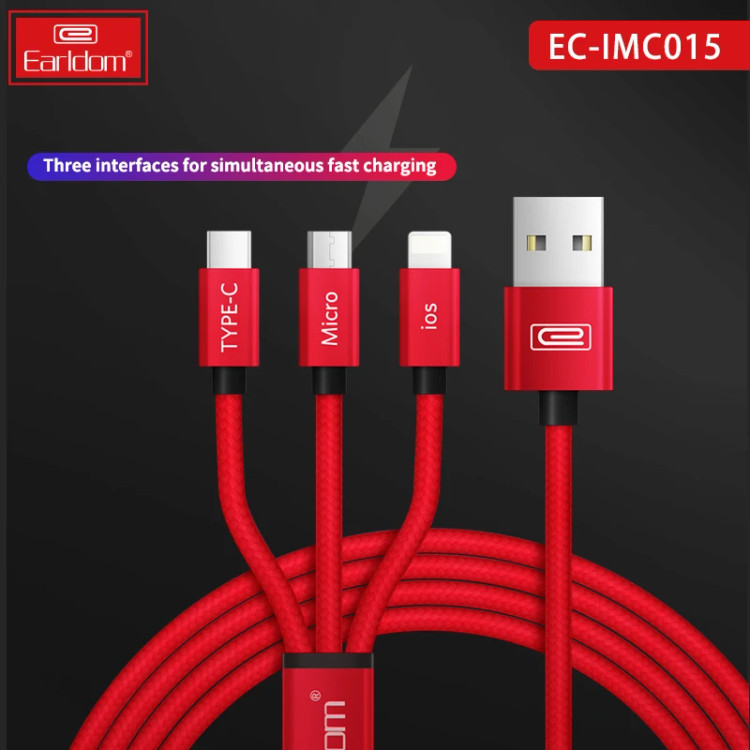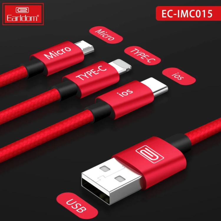 کابل تبدیل USB به USB-C / MicroUSB / لایتنینگ ارلدام مدل EC-IMC015 طول 1.2 متر