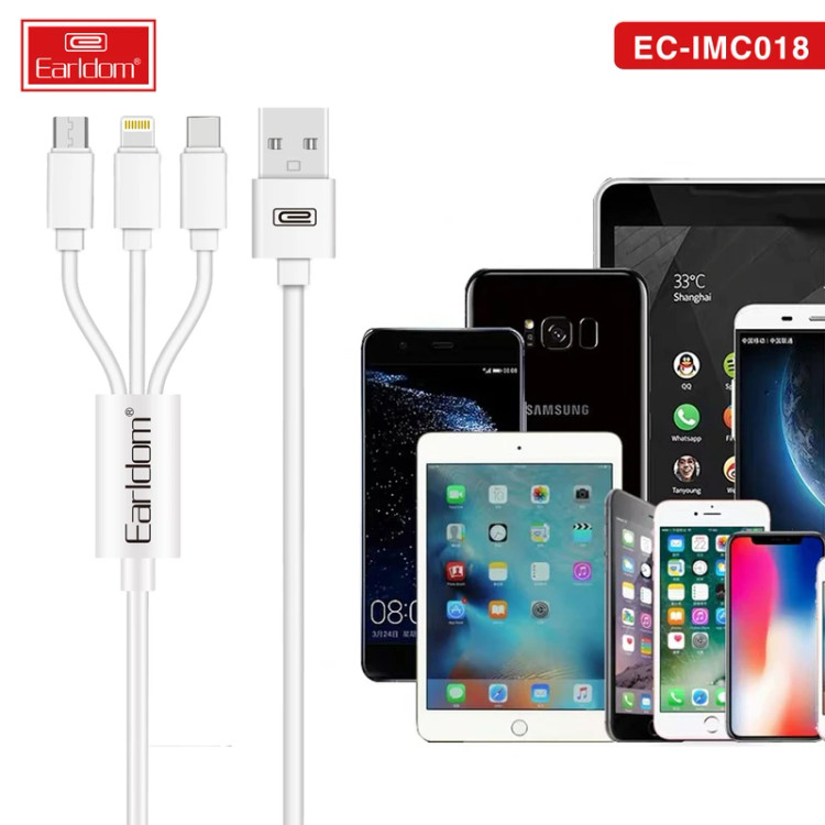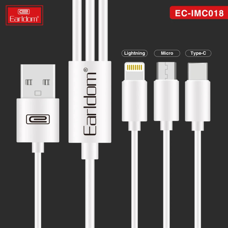کابل تبدیل USB به USB-C / MicroUSB / لایتنینگ ارلدام مدل EC-IMC018 طول 1.2 متر