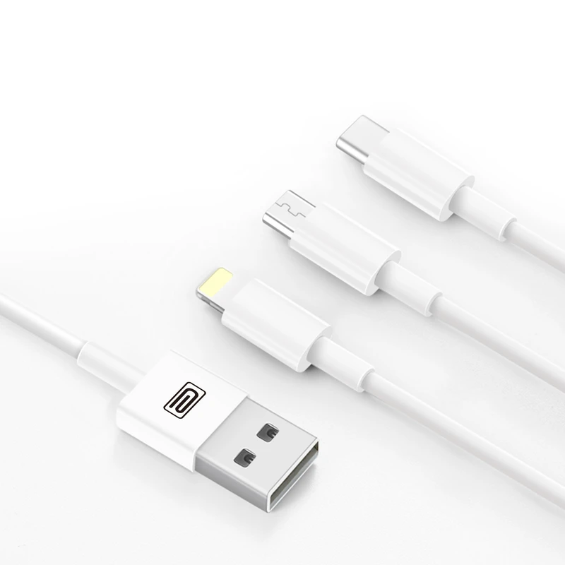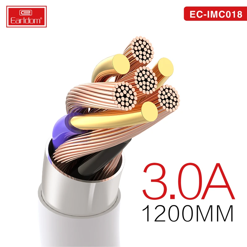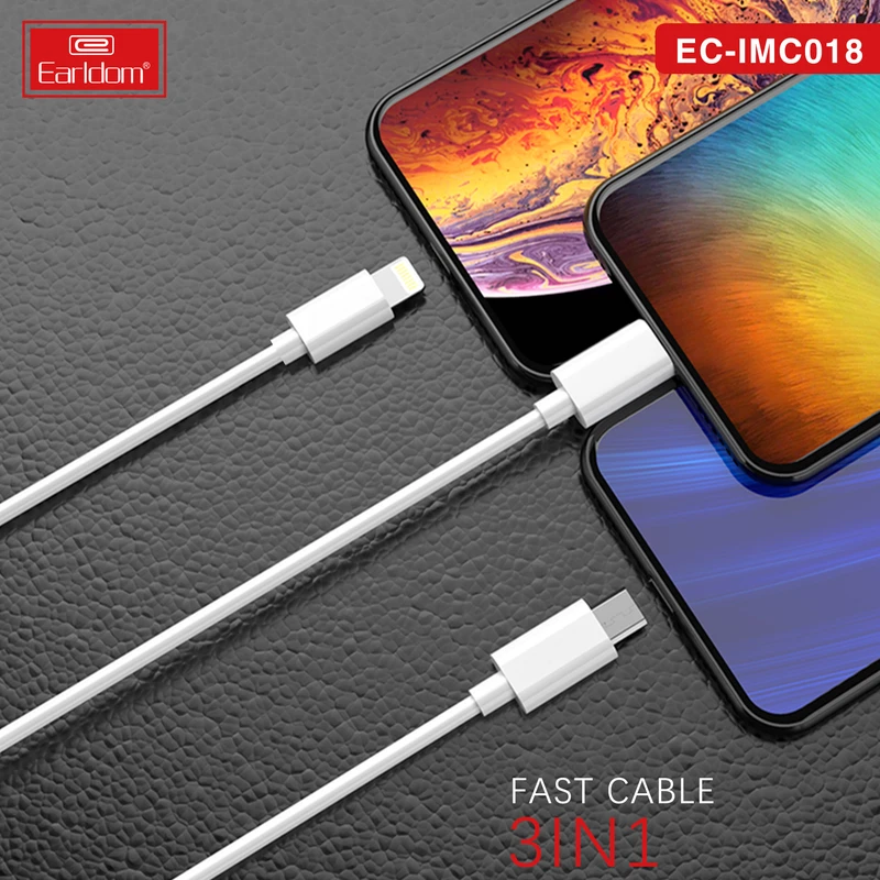 امروزه گوشی های موبایل دارای سه پورت شارژ لایتنینگ ، میکرو یو اس بی و تایپ سی می باشند که شما برای شارژ هر کدام از این دستگاه ها باید کابل مخصوص به آن را با خود داشته باشید.کمپانی Earldom با ساخت کابل EC-iMC018 باعث شده تا شما بتوانید با به همراه داشتن یک کابل هر سه گوشی را شارژ کنید.این کابل دارای کانکتور های Lightning ، Type-C و Micro USB بوده و به شما این امکان را می دهد تا هر نوع گوشی را با شدت جریان و ولتاژ 5V-3A شارژ کنید. توجه داشته باشید این کابل از تکنولوژی شارژ سریع 3 آمپر پشتیبانی می کند ولی در بعضی از گوشی ها علامت شارژ سریع نمایان نمی شود . این کابل از پلاستیک TPE نرم و ضخیم شبیه به جنس کابل های فابریکی ساخته شده است و مقاومت بالایی در برابر کشش و پارگی و گره خوردن دارد.طول 120 سانتی متری این کابل باعث شده تا برای استفاده های روزمره بسیار مناسب باشد.