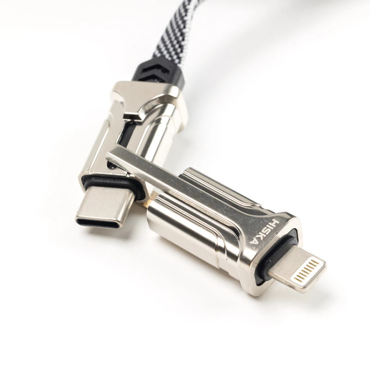 کابل تبدیل چهار کاره هیسکا مدل LX-30 از جدیدترین و خاص ترین محصولات این برند است. این کابل که از سه درگاه USB-A, TYPE-C, LIGHTNING بهره می برد به شما امکان استفاده برای انواع گوشی های موبایل و تبلت که از این پورت ها پشتیبانی می کنند قابل استفاده است. قدرت خروجی این کابل در حالت تایپ سی به تایپ سی 60 وات و در حالت تایپ سی به لایتنینگ 20 وات می باشد. سری این کابل فلزی می باشد و به صورت کشویی قابل تعویض است.همچنین این کابل قابلیت انتقال اطلاعات را به شما می دهد.