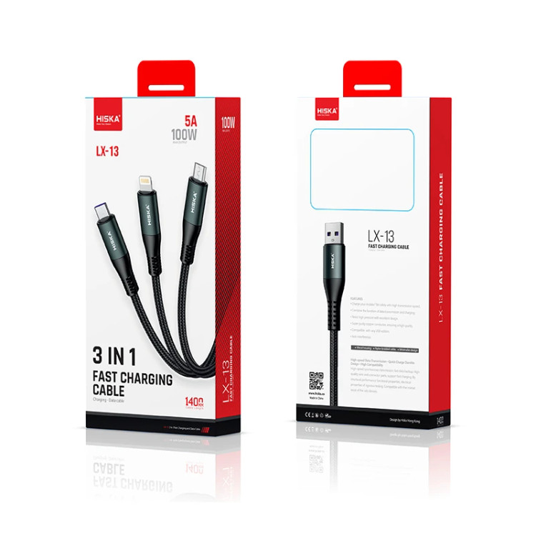 کابل تبدیل USB به لایتنینگ / USB-C / MicroUSB هیسکا مدل LX-13 طول 1.4 متر