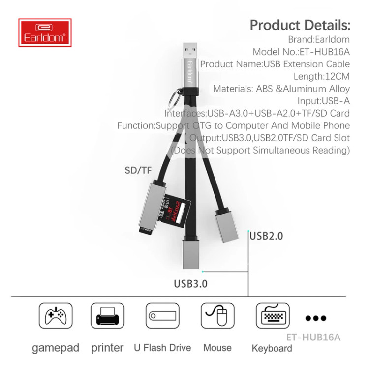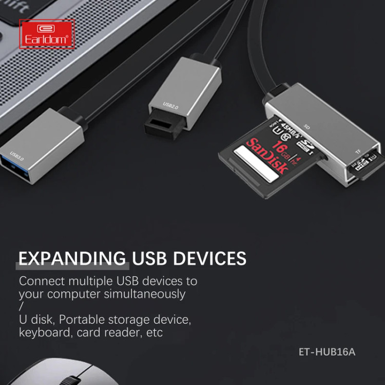 هاب 4 پورت USB و کارت خوان ارلدام مدل HUB16A