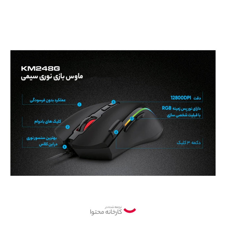 ماوسهای گیمینگ از پرطرفدارترین محصولات کمپانی کینگ استار است که با تکیه بر زیبایی و جذابیت در طراحی به بازار عرضه گردیده است. ماوس گیمینگ کینگ استار مدل KM248G با 180 سانتی متر طول کابل و جنس کنفی آن که از طریق پورت USB به سیستم متصل میگردد، امروزه مورد استفاده کاربران زیادی قرار گرفته است. از مشخصههای فنی این ماوس میتوان به مقدار جریان 200 میلی آمپر و ولتاژ 5 ولت آن هنگام استفاده، اشاره کرد. این محصول دارای 8 کلید و نشانگر LED با 13 طیف رنگی است که مختص گیمرها طراحی شده است. طول عمر این ماوس گیمینگ به 5 میلیون بار کلیک میرسد که از سیستم عاملهای اندورید، لینوکس، ویندوز و مک پشتیبانی میکند. اگر قصد خرید ماوس گیمینگ را دارید به هیچ عنوان از محصولات و ماوسهای گیمینگ کینگ استار غافل نشوید.