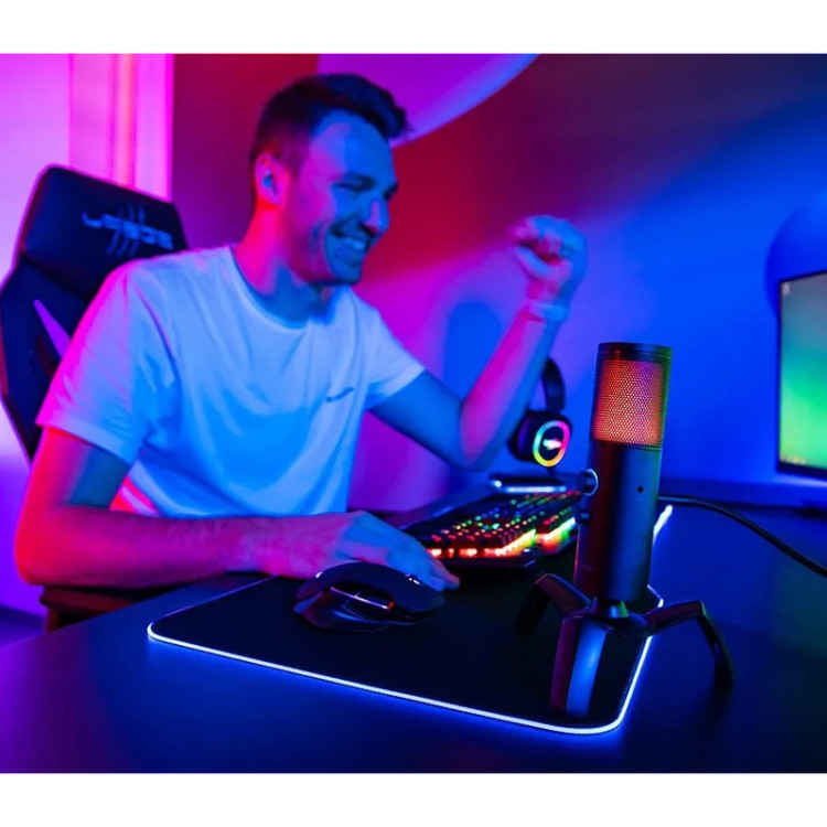 این محصول یک میکروفون استریمینگ با کیفیت بالا و نورپردازی جذاب است که برای ارتقا تجربه صوتی شما در پخش زنده، پادکست، گیمینگ و ضبط صدا طراحی شده است. این میکروفون دارای قابلیت کاهش نویز، تنظیم حساسیت و کلید قطع صدا است. همچنین دارای یک پایه متحرک و نورپردازی RGB با 16 میلیون رنگ است که به شما اجازه میدهد تا رنگ و حالت نور را بر اساس سلیقه خود تغییر دهید. این محصول با اکثر سیستمعاملها و نرمافزارهای استریمینگ سازگار است و به راحتی با کابل USB به دستگاه شما متصل میشود. مشخصات محصول: - میکروفونی ایدهآل برای ضبط پادکست، صدا، ولاگ، موسیقی یا استریم محتوا در شبکههای اجتماعی - کیفیت صدای HD و اتصال با کابل USB - دارای دو حالت ضبط صدا: کاردیواید برای حذف صداهای اضافی محیط اطراف و امنیدایرکشنال برای ضبط تمامی صداهای محیط - با محفظه آلومینیومی برای محافظت و جابجایی آسان - قرارگیری محکم روی پایه آلومینیومی - امکان جابجایی و چرخش 360 درجه به لطف مفصل توپی در پایه - دارای خروجی 3.5 میلیمتری برای هدفون و کنترل صدا بر روی میکروفون - کابل USB بادوام برای جلوگیری از خرابی و پیچ خوردن سیم - دارای سیستم نورپردازی چند رنگ - محتویات بستهبندی: میکروفون، پایه، کابل USB، محفظه آلومینیومی و دستورالعمل استفاده است .