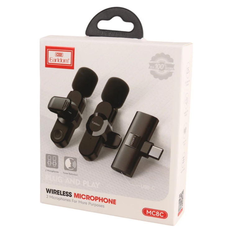 میکروفون یقهای بی سیم کالای دیجیتال بسیار پر کاربردی است که برای ضبط صدا موقع تهیه برنامه و یا محتوا کاربردهای فراوانی دارد. میکروفون ایرلدام نیز به دلیل دارا بودن امکانات فراوانش طرفداران زیادی دارد. میکروفون یقه ای بی سیم MC8C ایرلدام، متشکل از 2 میکروفن، یک دریافت کننده صدا با کانکتور تایپ سی است که به گوشی و دستگاه های سازگار متصل می شود. از این میکرفن وایرلس می توانید برای ضبط صدا روی گوشی اندروید استفاده کنید. روش راه اندازی میکروفون دو کاربره Earldom مدل MC8C فرستنده را به گوشی خود متصل کنید. میکروفون را روشن کرده و منتظر بمانید که به فرستنده متصل شود. بعد از اتصال فقط کافی است میکروفون را به یقه لباس متصل کرده و از آن استفاده کنید. وقتی شروع به ضبط ویدیو کنید صدا فقط از طریق فرستنده ضبط میشود و احتیاج به نصب هیچ برنامه و روشن کردن بلوتوث نیست. حالت های ضبط صدا در میکروفون Earldom مدل MC8C 1:آکوستیک : این حالت برای استفاده در محیط آکوستیک شده و بدون سر و صدای مزاحم است و بالاترین کیفیت ضبط را دارد. 2:کاهش نویز هوشمند: صدای شفاف را حتی در محیط های پر سر و صدا تضمین می کند و صدای شما را از بقیه صداهای مزاحم تشخیص میدهد. 3:حالت ریورب : این حالت به صدای شما اکو میدهد و بیشتر برای خوانندگی و دکلمه مناسب است یکی دیگر از ویژگیهای این میکروفون، شارژ سریع و زمان آماده به کار بالای آن است. این میکروفون فقط با شارژ یک ساعته، میتواند 12-15 ساعت شارژدهی داشته باشد. این ویژگی برای کسانی که نیاز به استفاده طولانی مدت از میکروفون دارند و نمیخواهند در میان کار خود برای شارژ مجدد دستگاه وقفه ایجاد شود بسیار مهم است. همچنین، با داشتن تاخیر 30 میلی ثانیه، در این زمینه عملکرد بسیار خوبی خواهد داشت. با استفاده از این محصول، شما میتوانید با آرامش خاطر صدای خود را برای مخاطبان خود ارائه دهید، زیرا تاخیر کم این محصول از بروز هرگونه مشکلی در زمان پخش صدا جلوگیری میکند. در نهایت، فناوری نویز کنسلینگ هوشمند در این میکروفن یقهای، کیفیت صدای شما را به حداکثر میرساند. با استفاده از این فناوری، صداهای زمینه و نویزهای غیرمرتبط از صدای شما حذف میشوند، بنابراین مخاطبان شما فقط صدای شما را بدون هیچگونه نویز اضافی میشنوند.