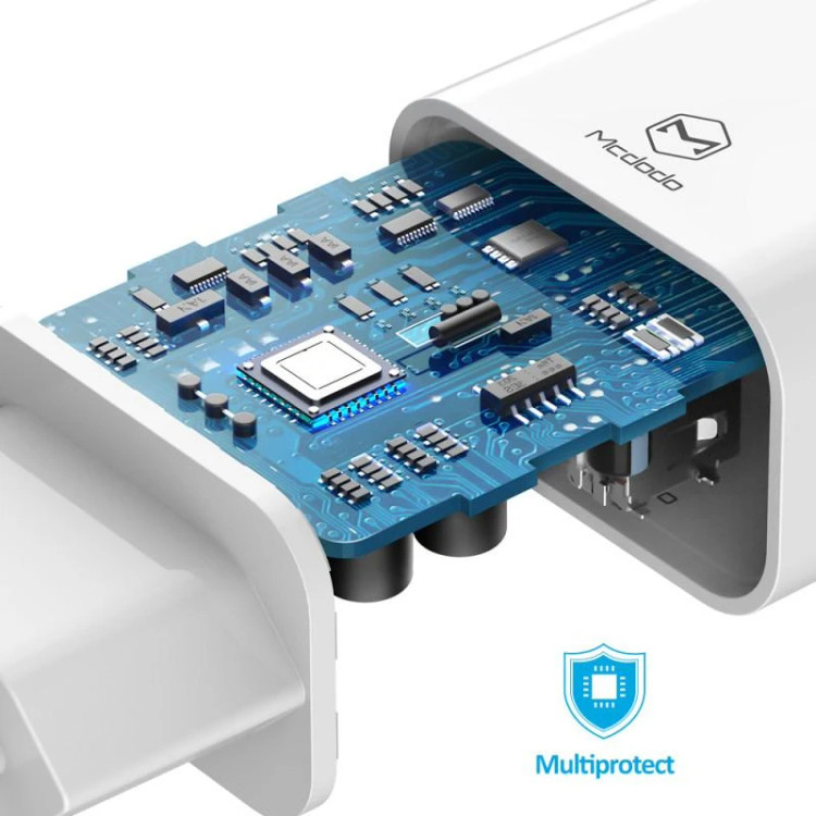 شارژر مک دودو مدل CH-6721 بهمراه کابل یک متری USB-C با قابلیت شارژ همزمان 2 دستگاه و پشتیبانی از شارژ سریع می تواند به خوبی عملیات شارژ دستگاه شما را انجام دهد . کابل همراه این محصول 1 متری می باشد . جنس بدنه شارژر Fireproof ABS + PC می باشد که در مقابل حرارت بالا و آتش سوزی مقاومت بسیار بالایی دارد . کابل داخل بسته بندی قابلیت انتقال اطلاعات نیز دارد .