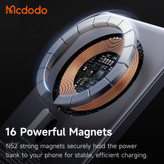 پاوربانک اپل مک دودو مدل MC-464 با 16 هسته مغناطیسی قوی N52، به طور محکم به قاب گوشی شما میچسبد و شارژ پایدار و بدون لغزش را تضمین میکند. این پاور بانک به دلیل کالیبراسیون خودکار موقعیت شارژ، به راحتی گوشی شما را بدون نیاز به تنظیم دستی شارژ میکند. همچنین قادر است گوشیهای سری 12 و بالاتر اپل آیفون را که دارای پشتیبانی از استاندارد Magsafe را به راحتی شارژ نماید.