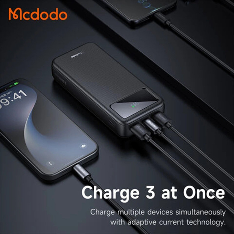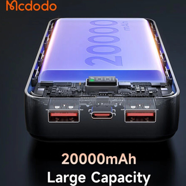پاوربانک 22.5 واتی مدل Mcdodo MC-423 ظرفیت آن 20 هزار میلی آمپر می باشد. این پاوربانک می تواند آیفون سری 16 را تا 3.5 مرتبه شارژ کند. این پاوربانک دارای 3 پورت خروجی می باشد که پورت های خروجی آن شامل دو پورت USB-A و یک پورت تایپ سی می باشد. پورت USB-A آن دارای فناوری QC و پورت تایپ سی آن داریا فناوری PD می باشد. توان خروجی پورت USB- A آن 22.5 وات و پورت تایپ سی آن 20 وات است.