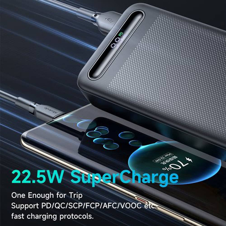 پاوربانک مک دودو 22.5W مدل MC-389 ظرفیت 20000 میلی آمپر ساعت برای ارائهتجربه شارژ سریع و مطمئن برای انواع دستگاهها طراحی شده و از استانداردهای مختلف شارژ پشتیبانی میکند تا با بیشتر گوشیهای هوشمند و دستگاهها سازگار باشد.