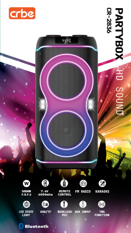 اسپیکر CRBE CR-2836 یک پارتی باکس حرفهای و همهکاره است که تجربهای پرانرژی از موسیقی را برای مهمانیها، دورهمیها و فضای باز ارائه میدهد. طراحی مدرن و جمعوجور همراه با دستگیره حمل، استفاده راحت و جابجایی آسان را برای کاربران تضمین میکند.