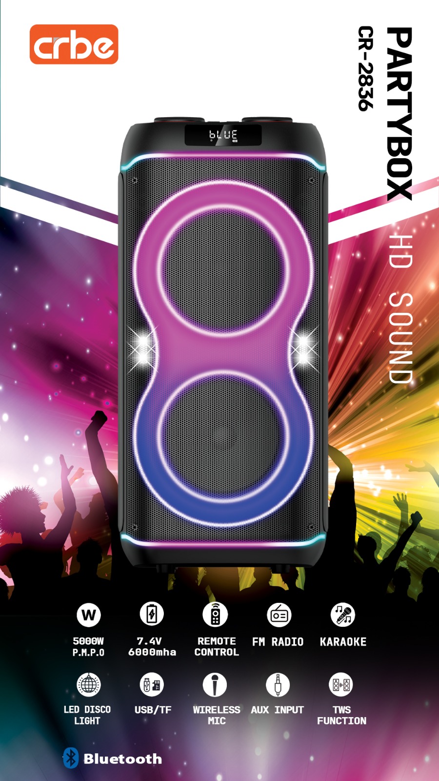 اسپیکر CRBE CR-2836 با صدای قدرتمند، طراحی مدرن و امکانات چندمنظوره، گزینهای عالی برای علاقهمندان به موسیقی و برگزاری مهمانیهای پرانرژی است.