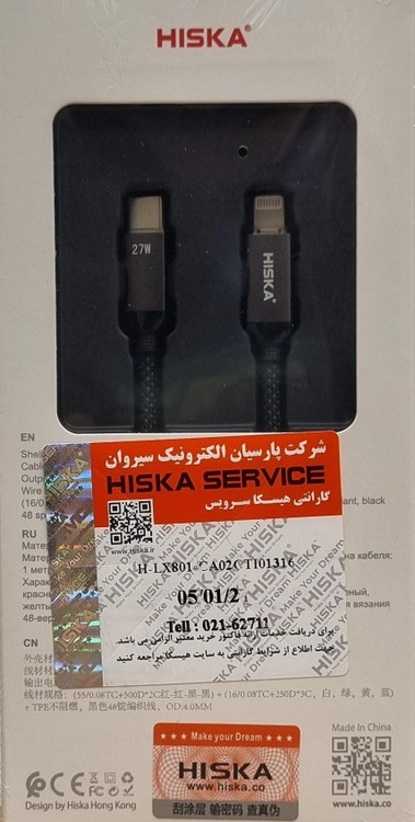 کابل شارژر اورجینال ایفون 27 وات هیسکا hiska Lx801cl